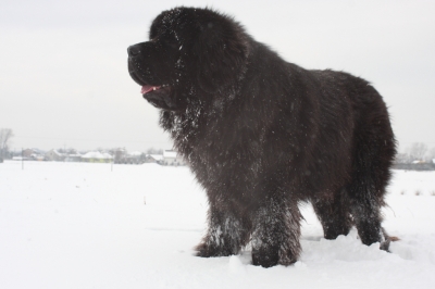 Hatalmas macikutya. Háta egyenes, nyaka rövid, mellkasa mély. Farka lelóg. Lábai egyenesek és erősek. Feje nagy, háromszög-füle lelóg, kerek szemei sötétbarnák. Hosszú, sűrű és durva szőre fekete.